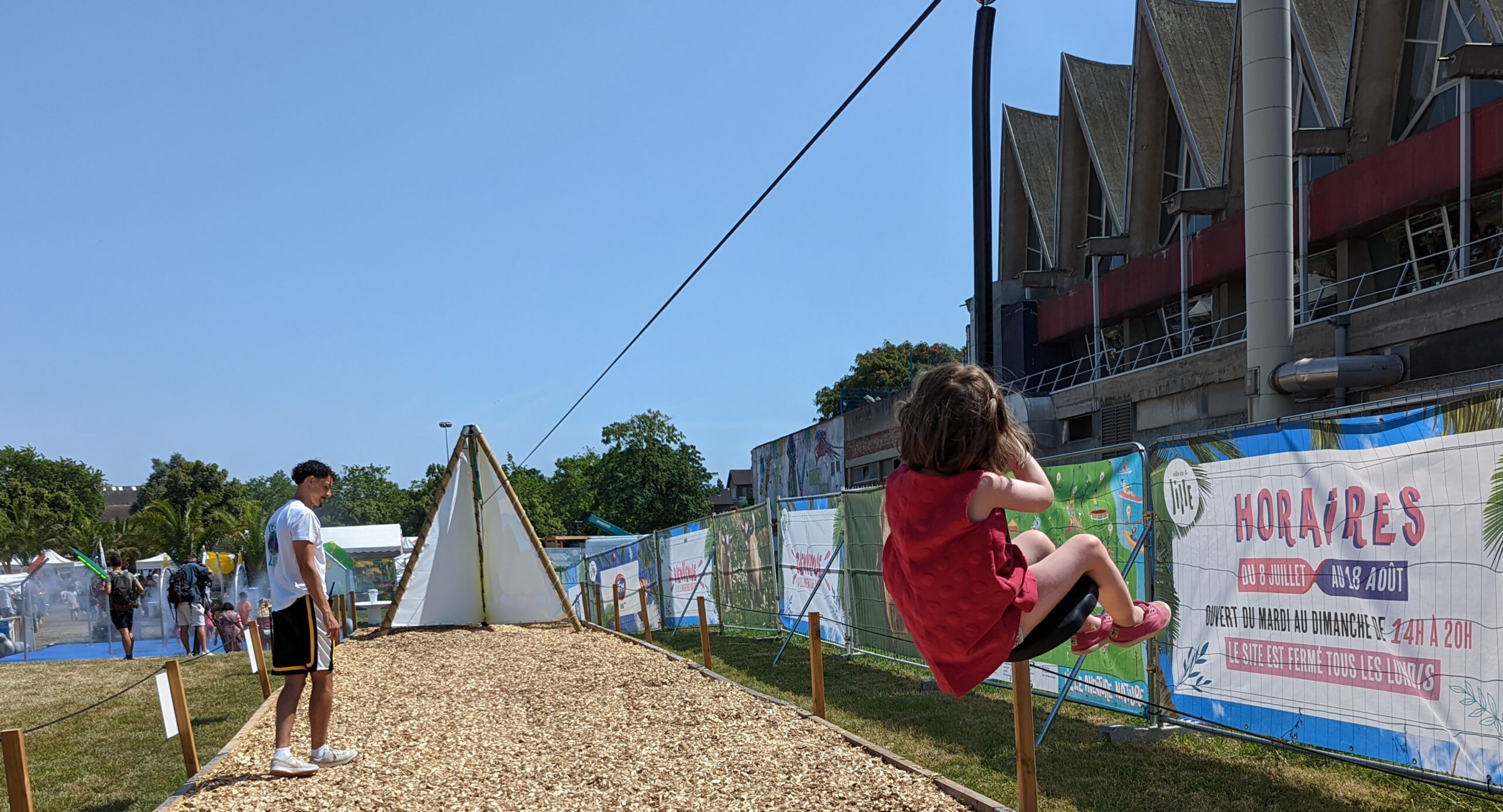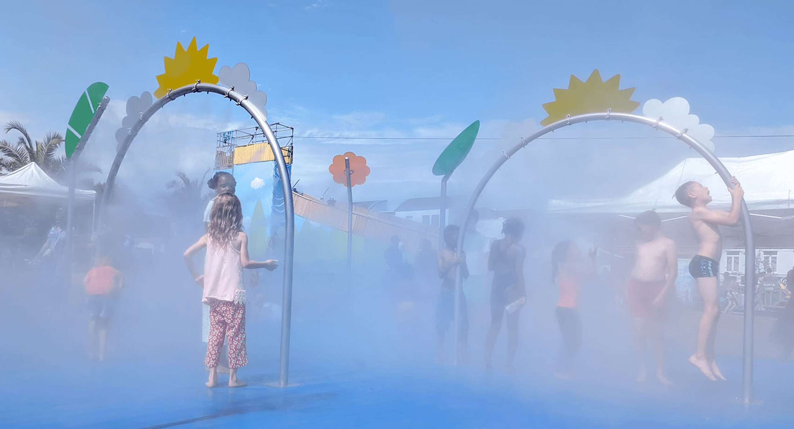 Lille Aventure Nature réitère l’installation d’une aire de brumisation de 100m² ornée de jolis mâts aux couleurs chaudes et variées. Cette plateforme est idéale pour profiter d’une zone de rafraîchissement qui ne nécessite pas de porter de maillot de bain ni même de passer par une zone de douches et pédiluve !