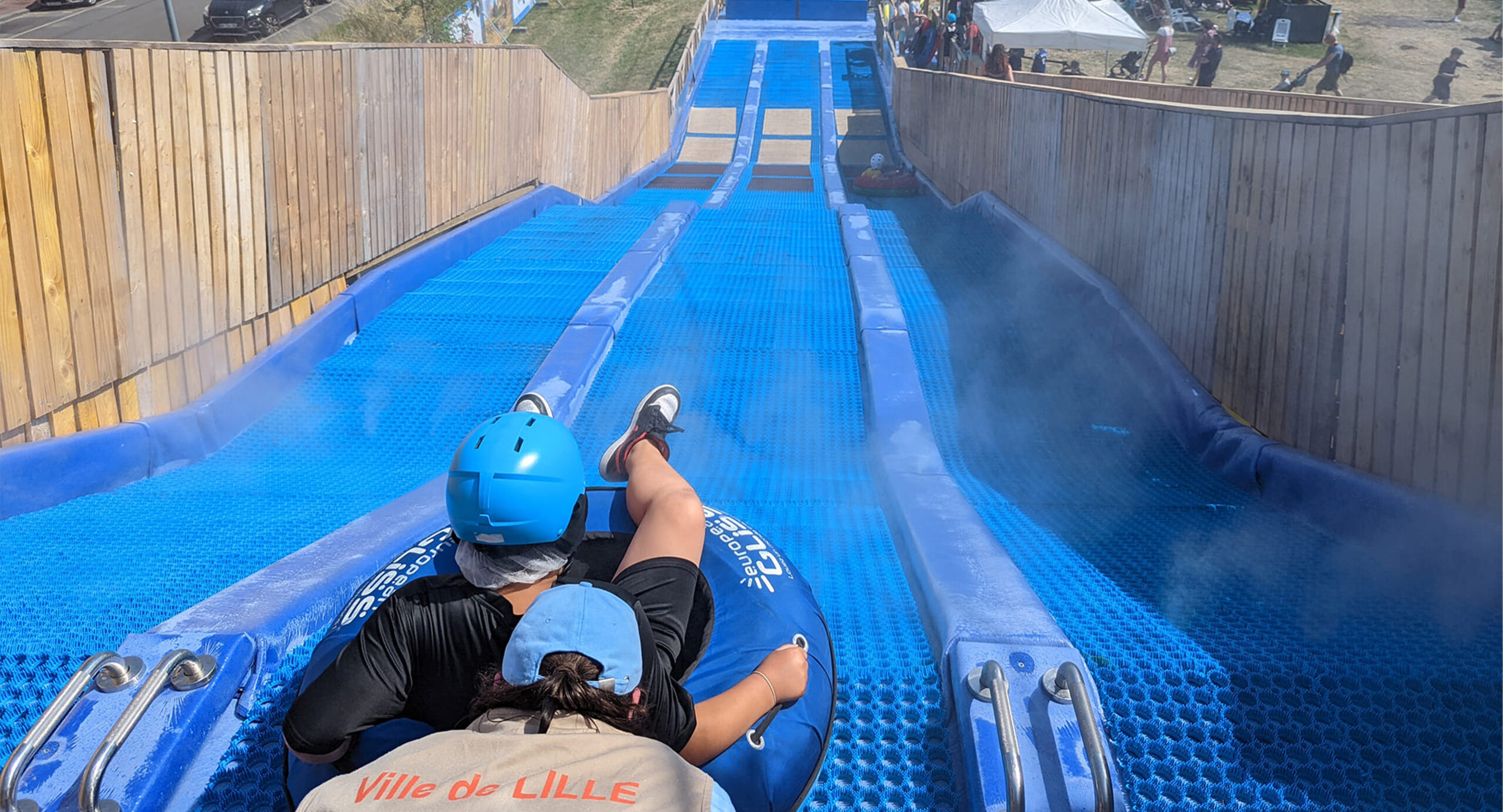 Ce concept est une innovation du groupe qui unit les marques Gliss Event et City Grimp. En effet, la piste de luge XXL 3 en 1 propose :