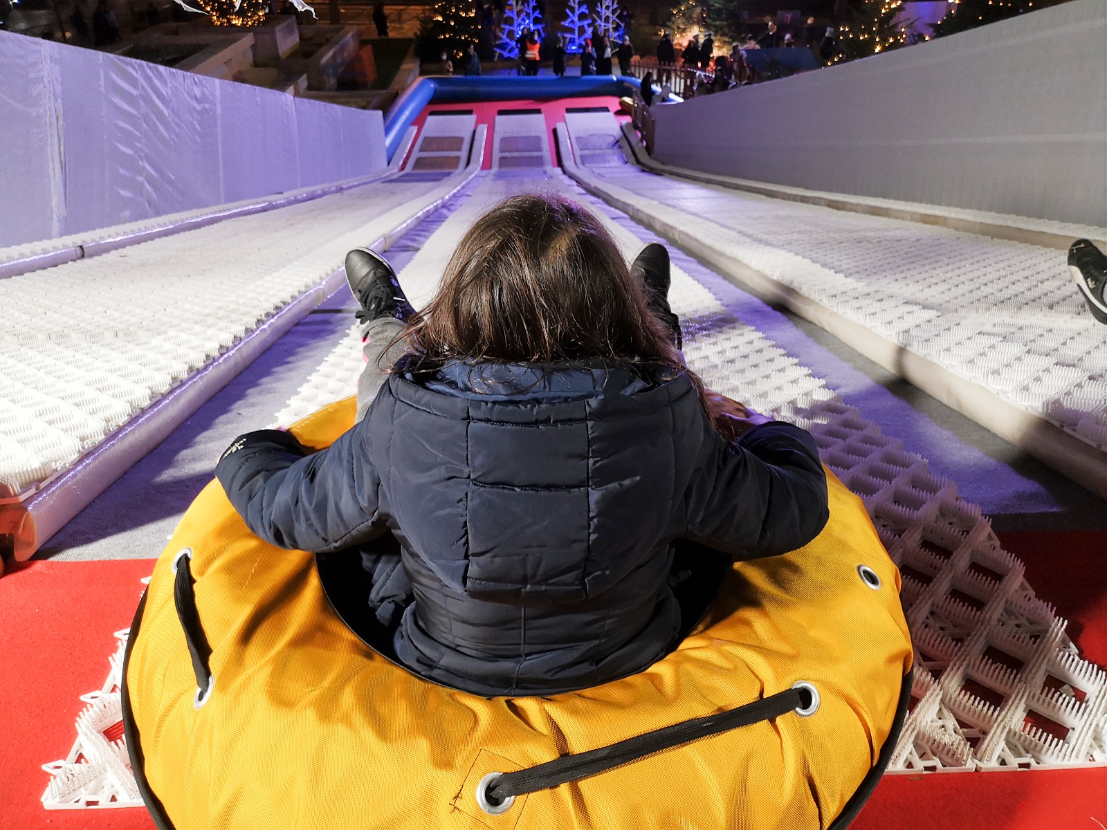 La piste de luge XXL de 3 couloirs rythmera ainsi les vacances de fin d’année de celles et ceux qui ont la chance de partager quelques glissades au cœur de la capitale.