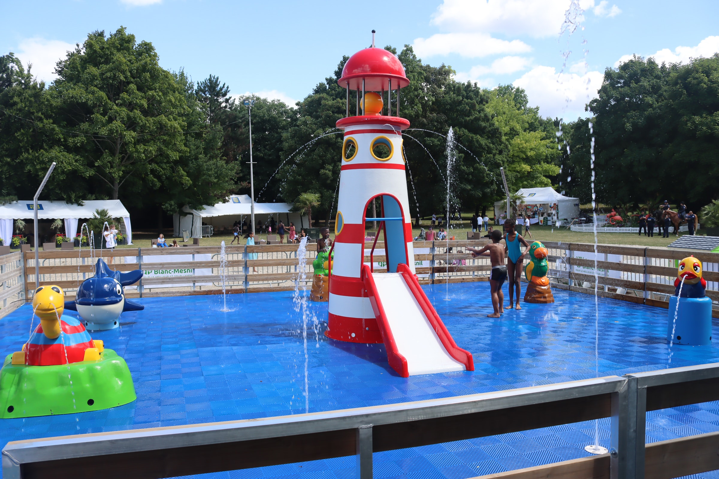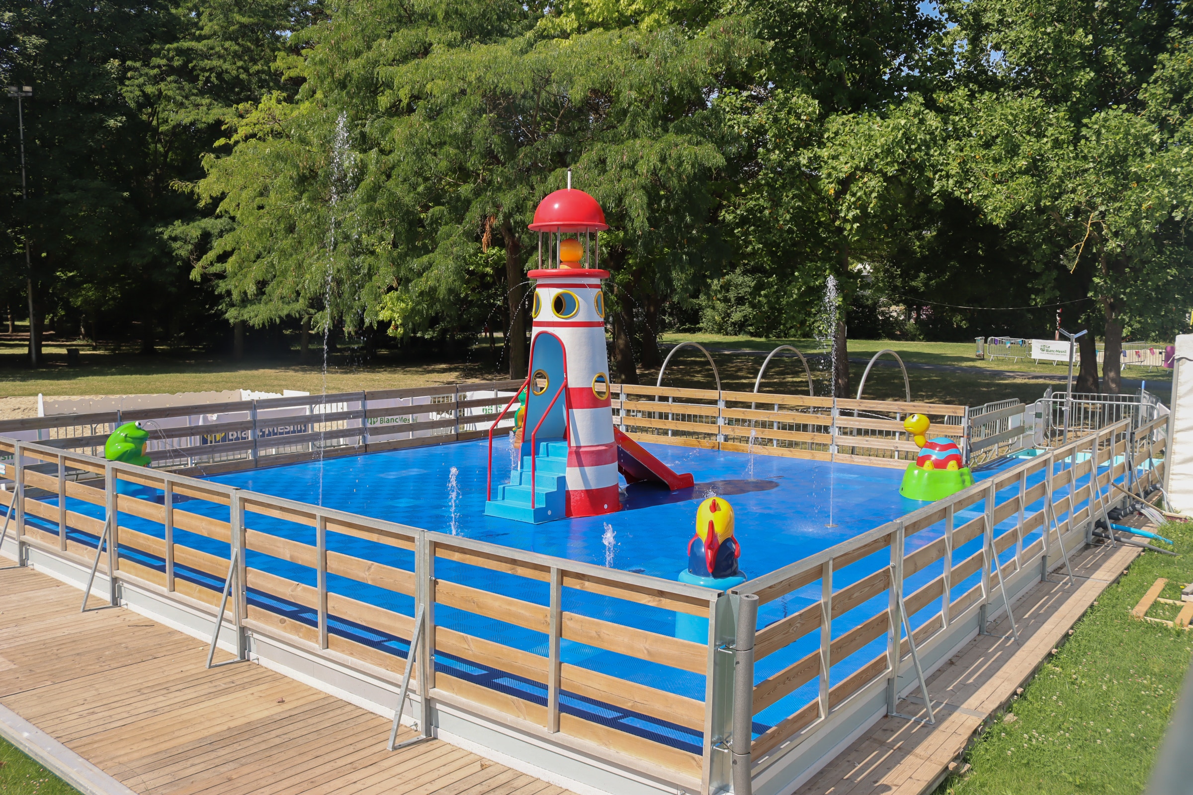 Cet été, Le Blanc-Mesnil métamorphose le parc de la mairie en un lieu de rafraîchissement. Bassin mobile, jeux aquatiques et brumisation… une escale divertissante pour des vacances au cœur de la ville !