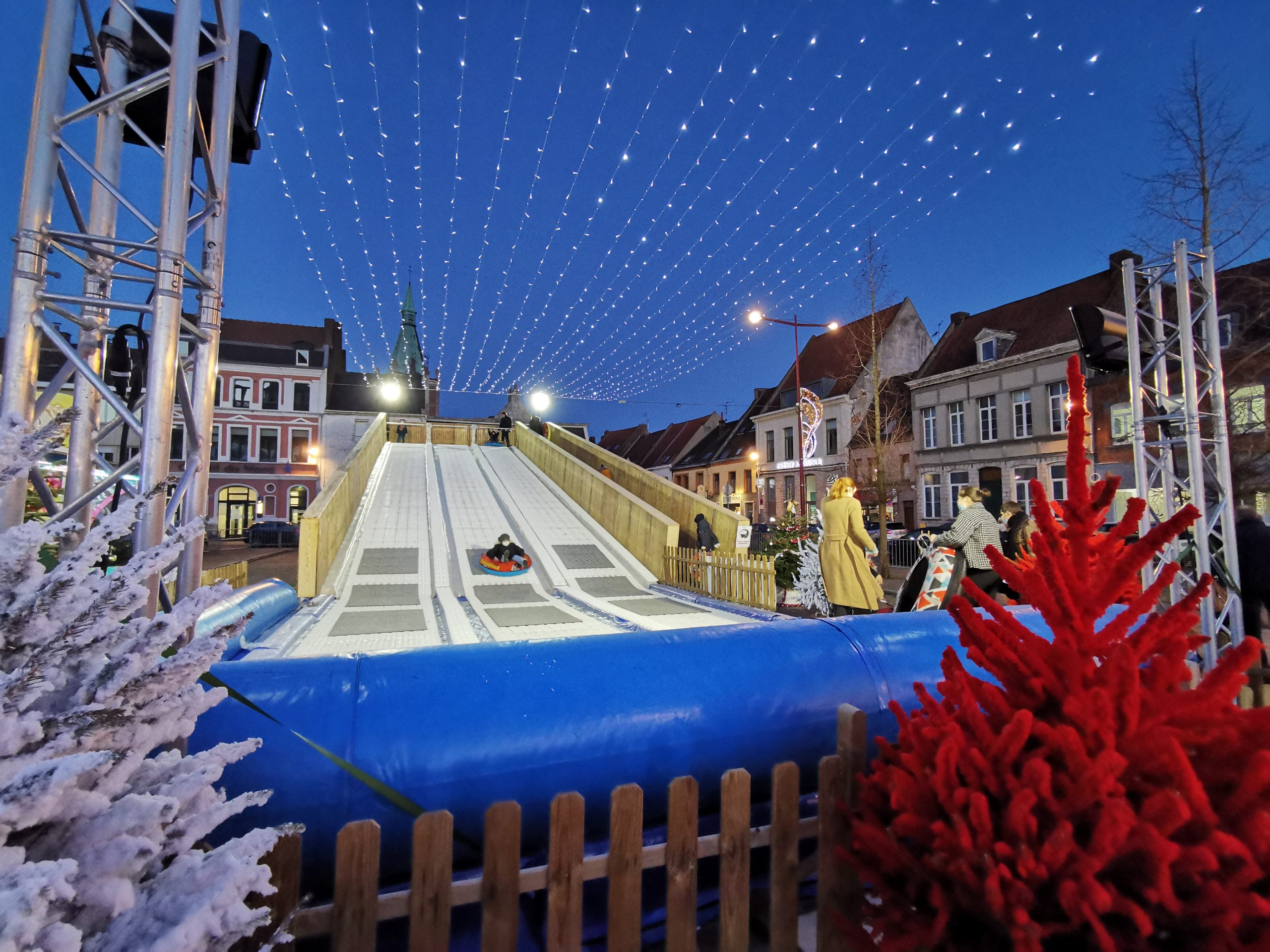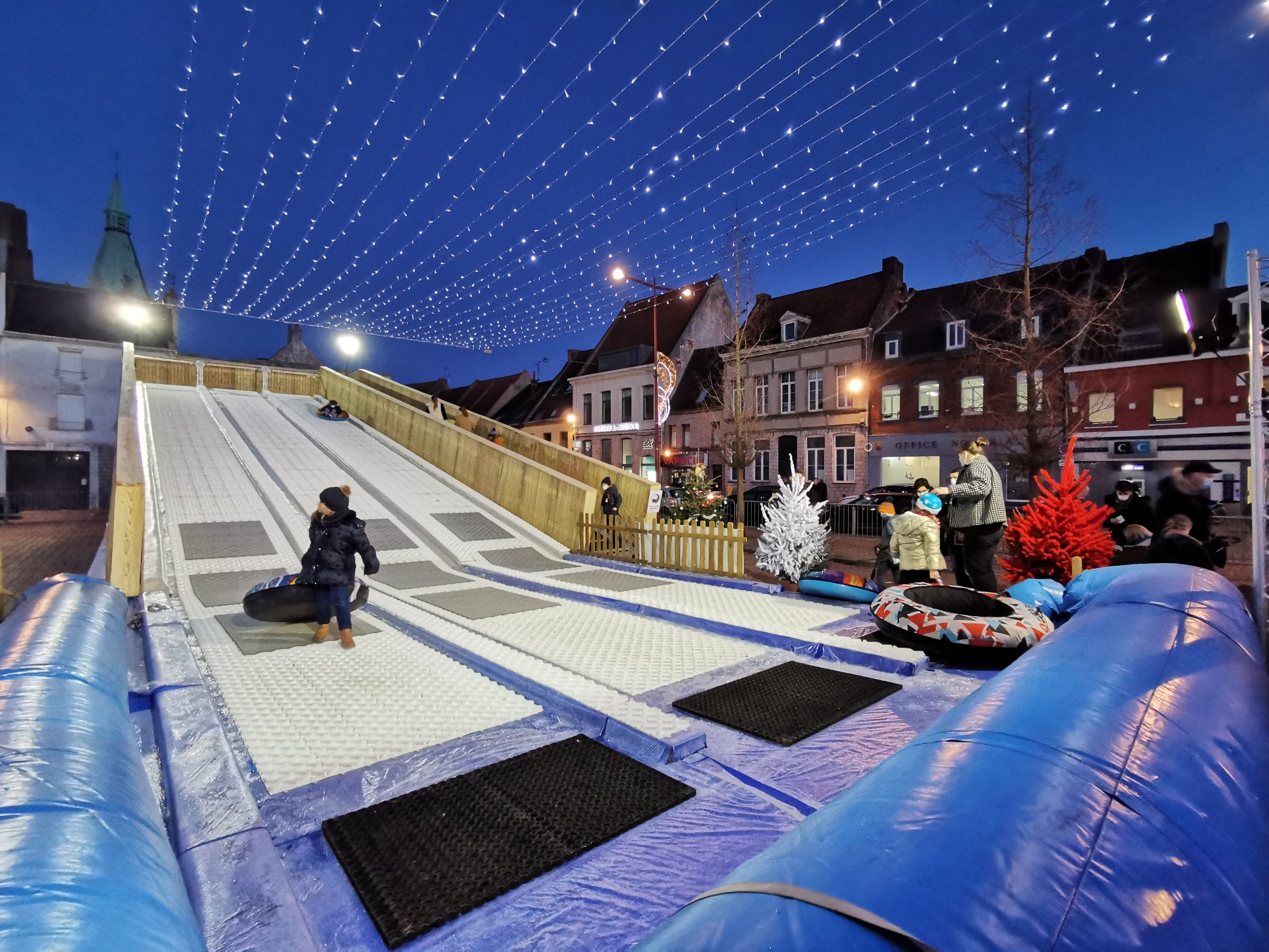 Cette commune des Hauts-de-France a choisi le groupe Europ Event pour l’accompagner dans la mise en place d’une piste de luge géante de 3 couloirs. Surplombée d’un magnifique plafond de leds, il y avait de la magie dans l’air !